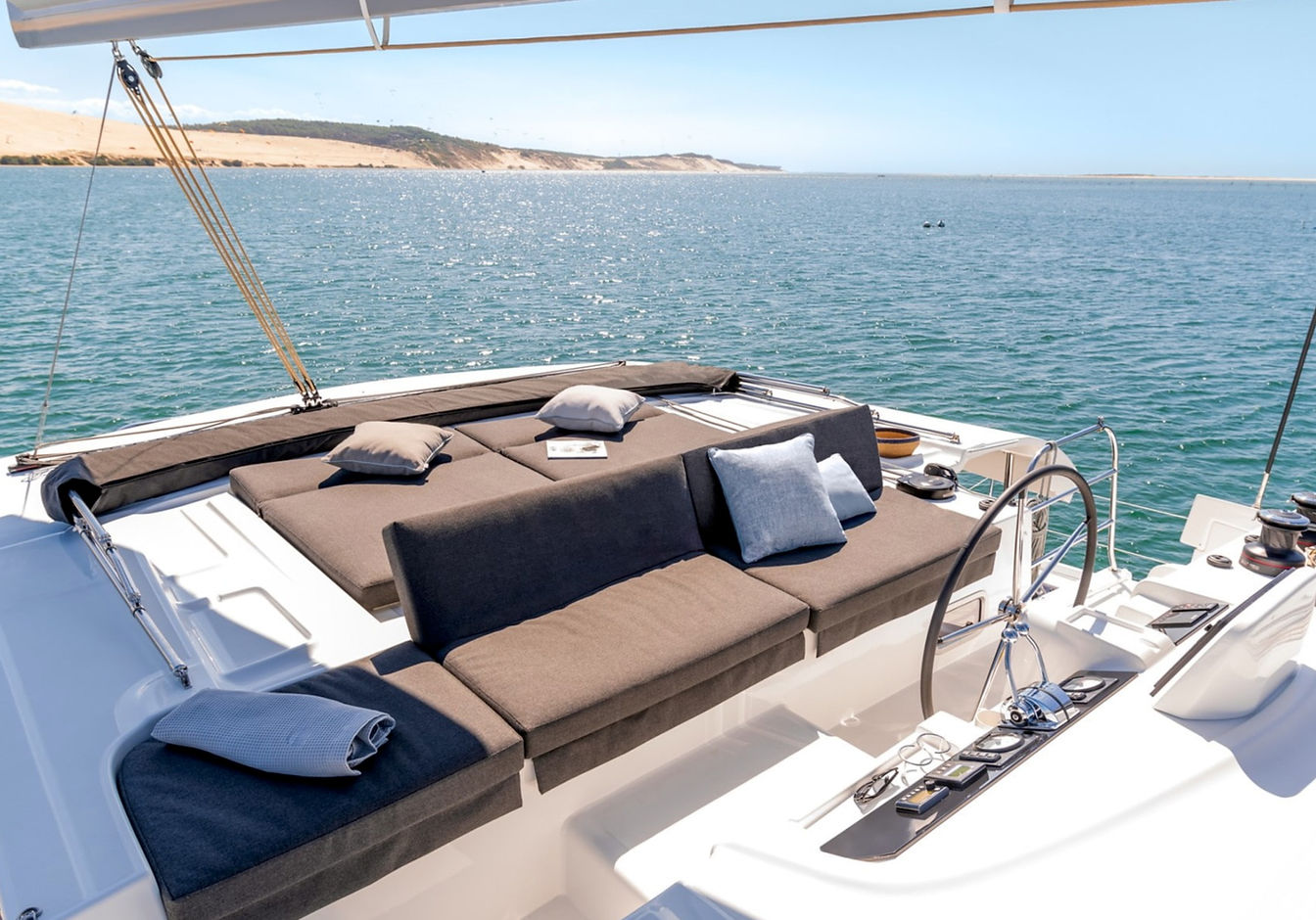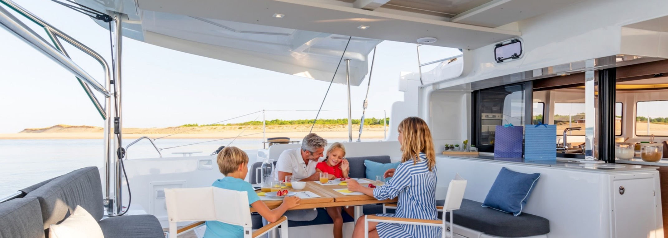 A family catamaran for comfortable and peaceful time on the water.