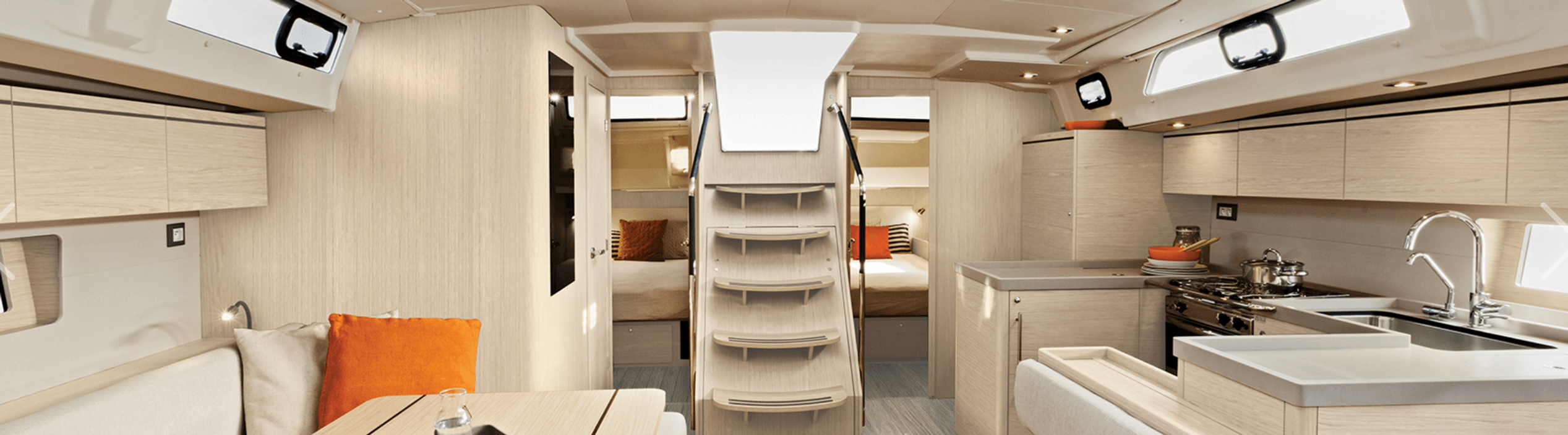 One third of the Oceanis 51.1’s hull is stepped. The hull creates additional interior space allowing for exciting new layouts on a boat this size.  With emphasis on taut cruiser lines, she is a joy to move around and reassuringly safe. The spacious cockpit, many relaxation and sun bathing areas, as well as an aft swim platform, promise true comfort​​